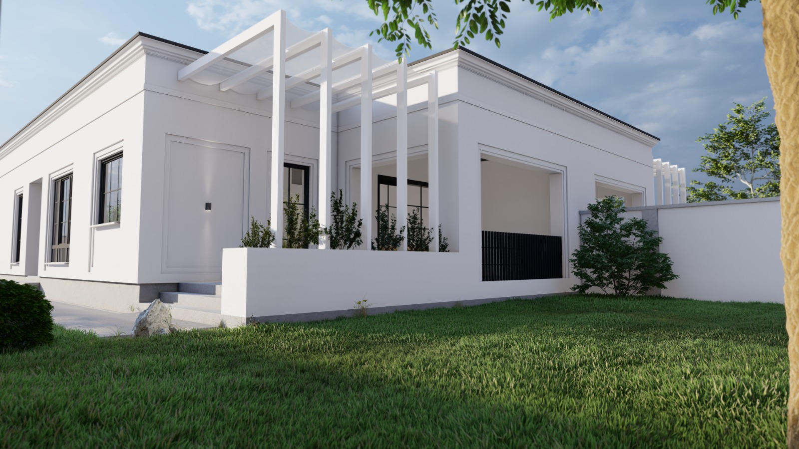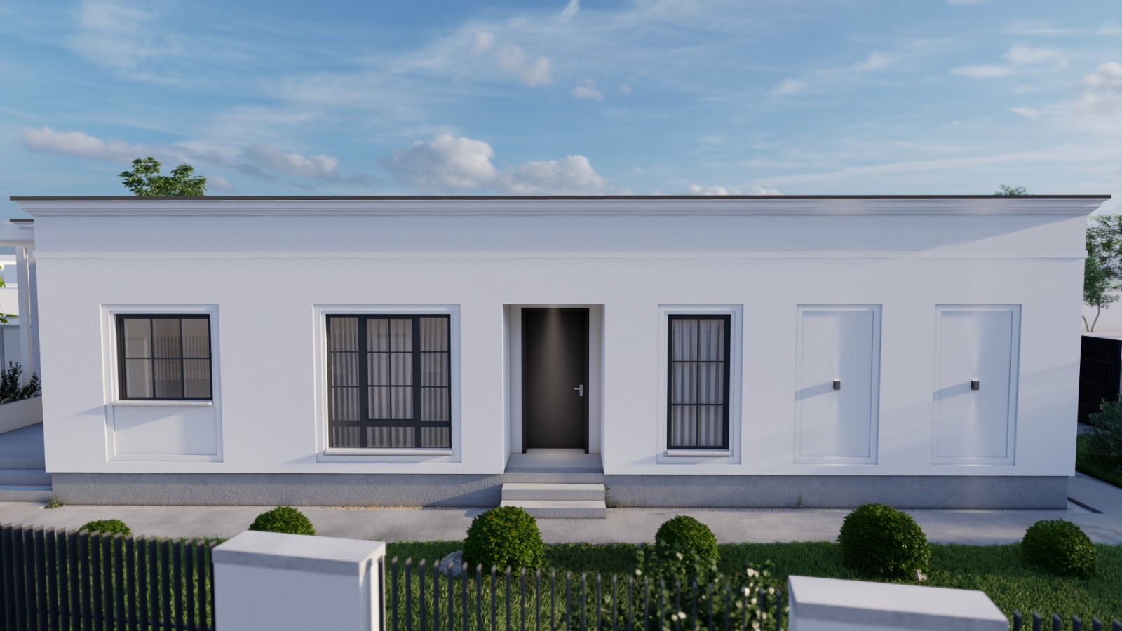 Totodată, iluminatul exterior este inclus, inclusiv dotarea cu corpuri de iluminat.