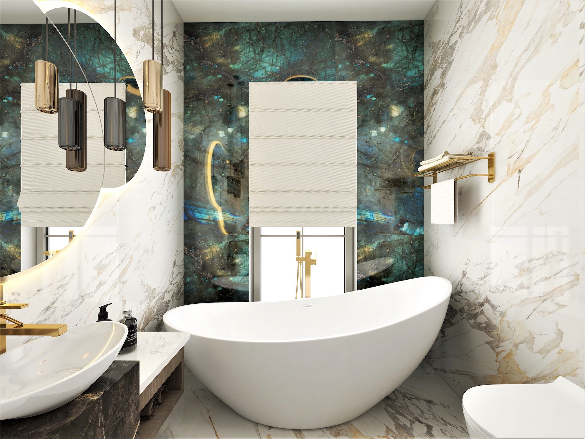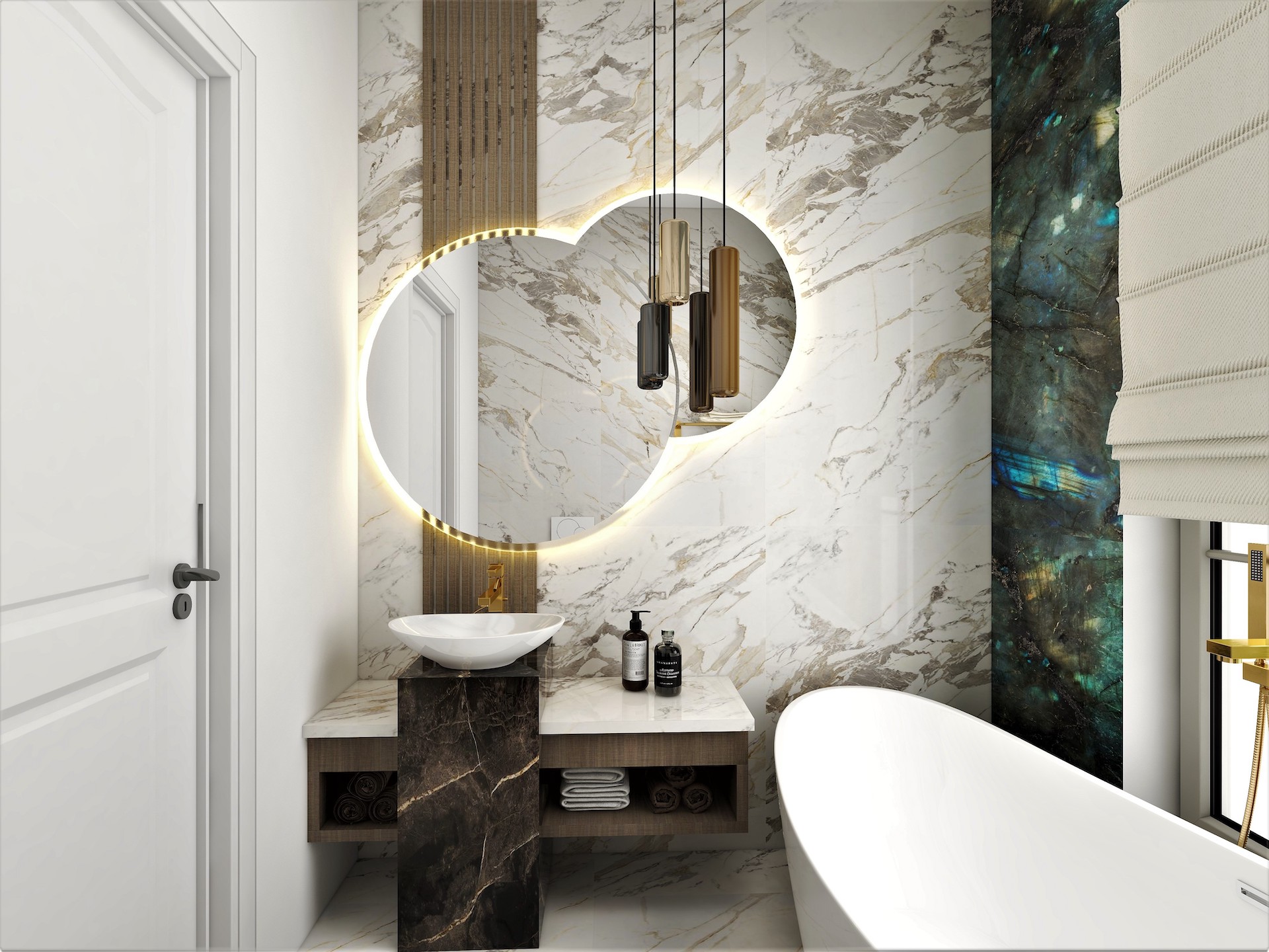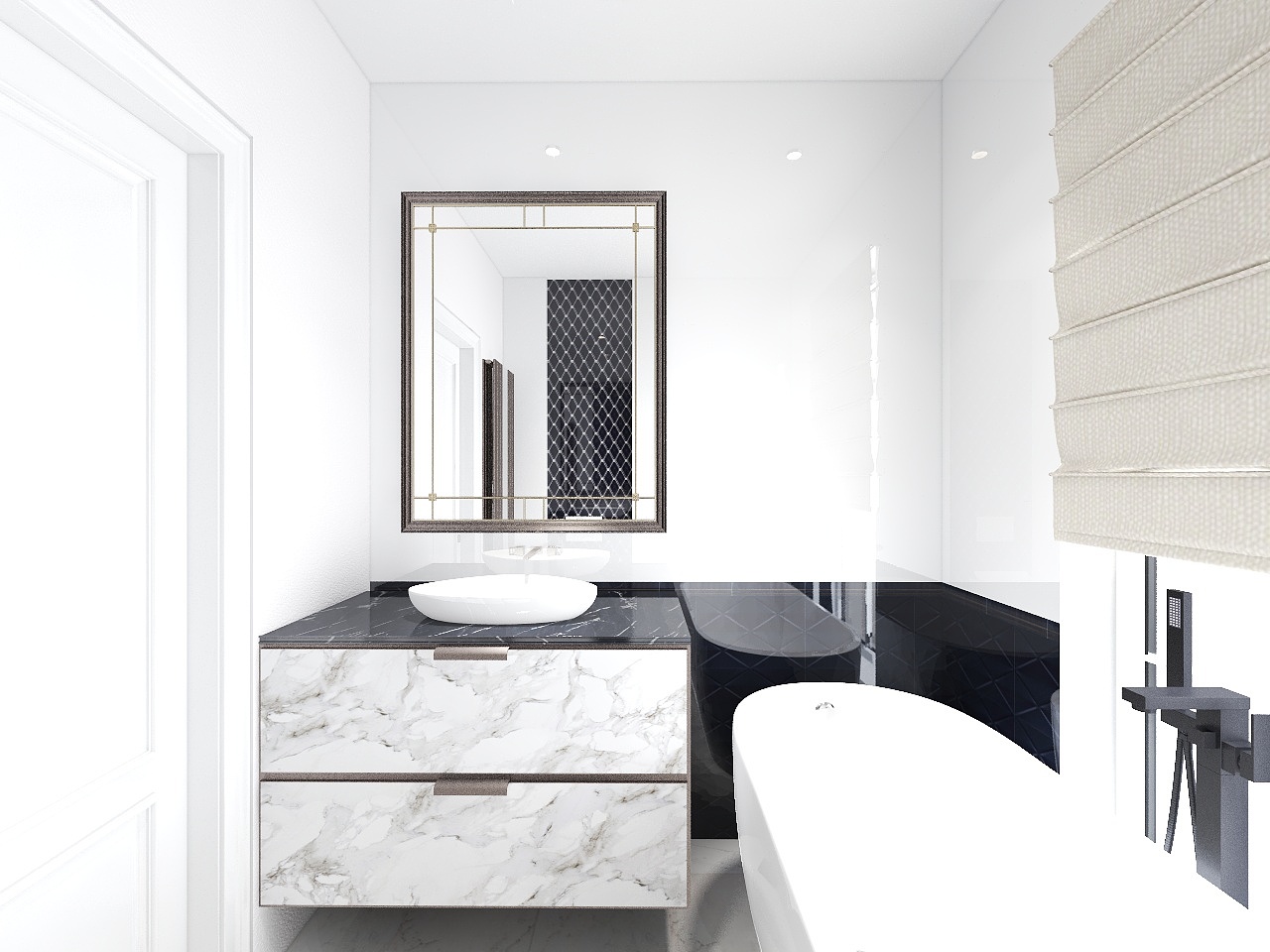 - Băi utilate și mobilate la fel ca și în randări