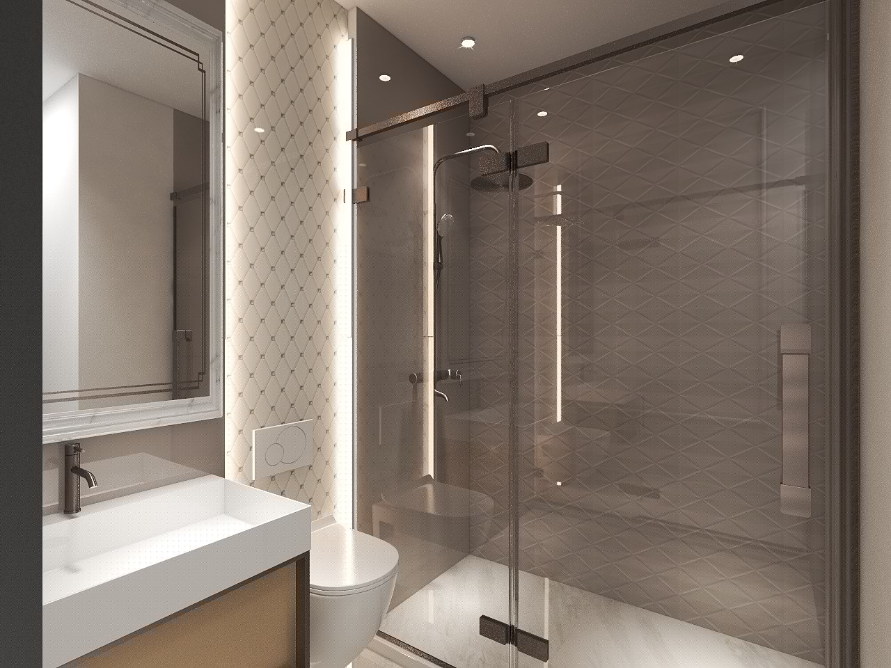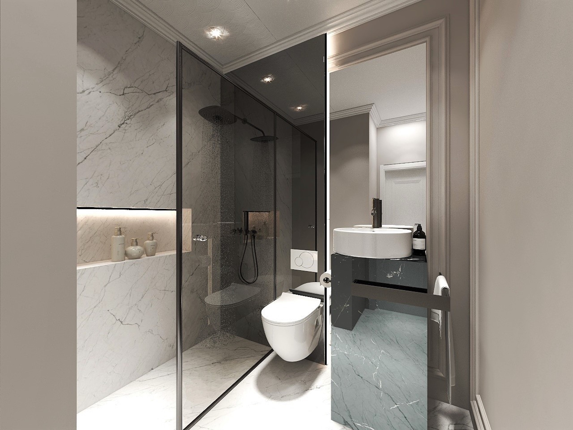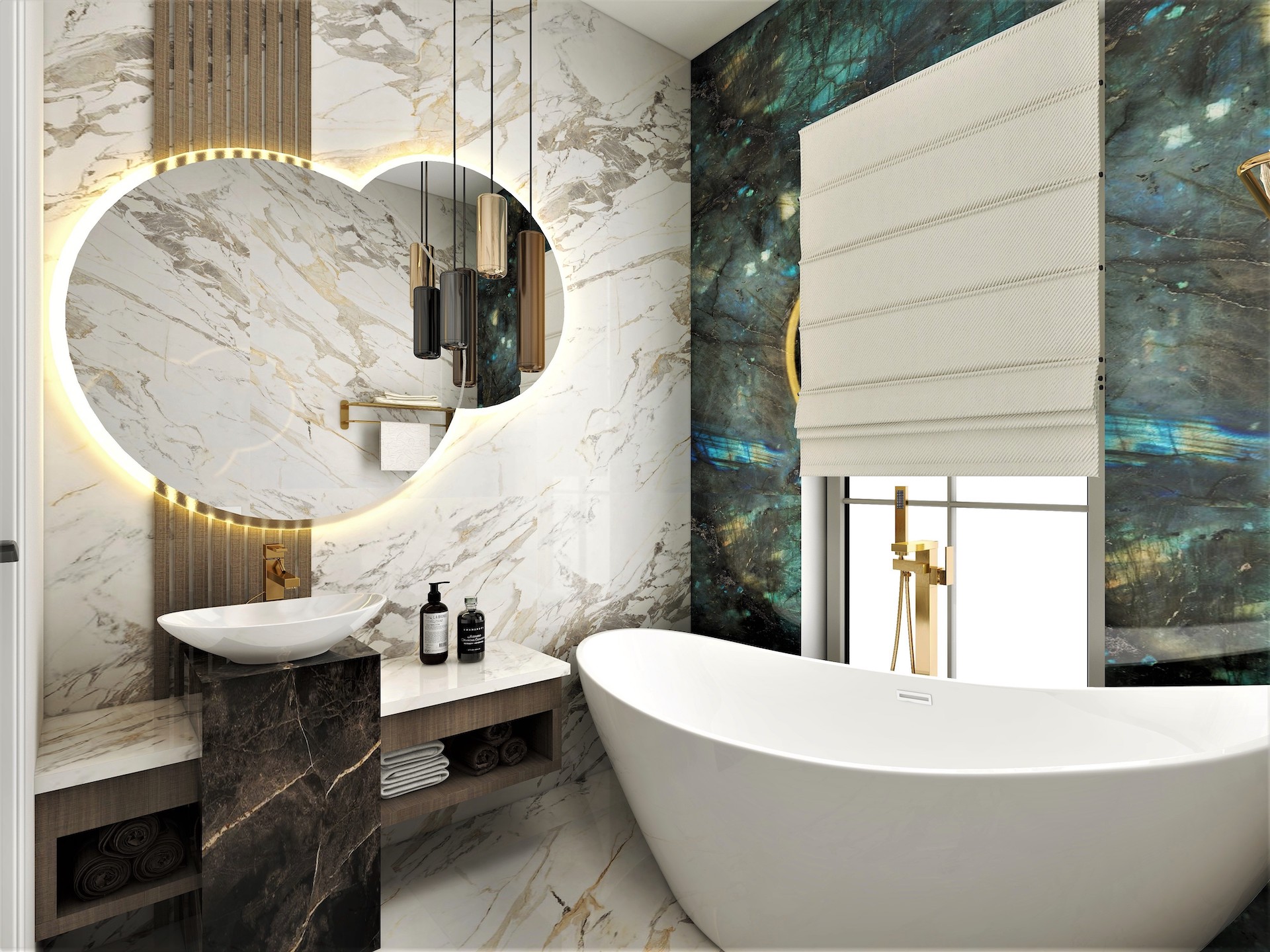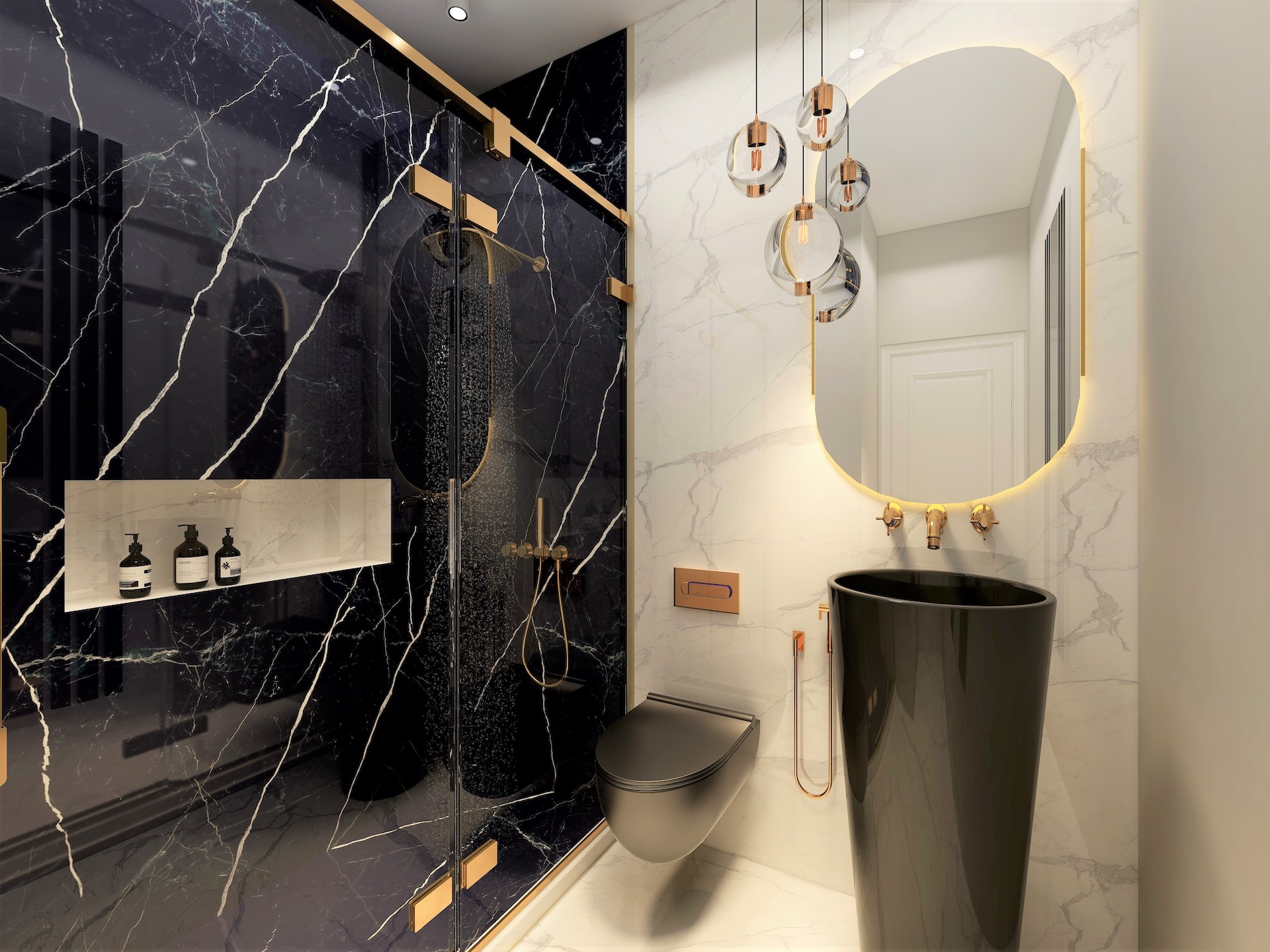 - Băi utilate și mobilate la fel ca și în randări