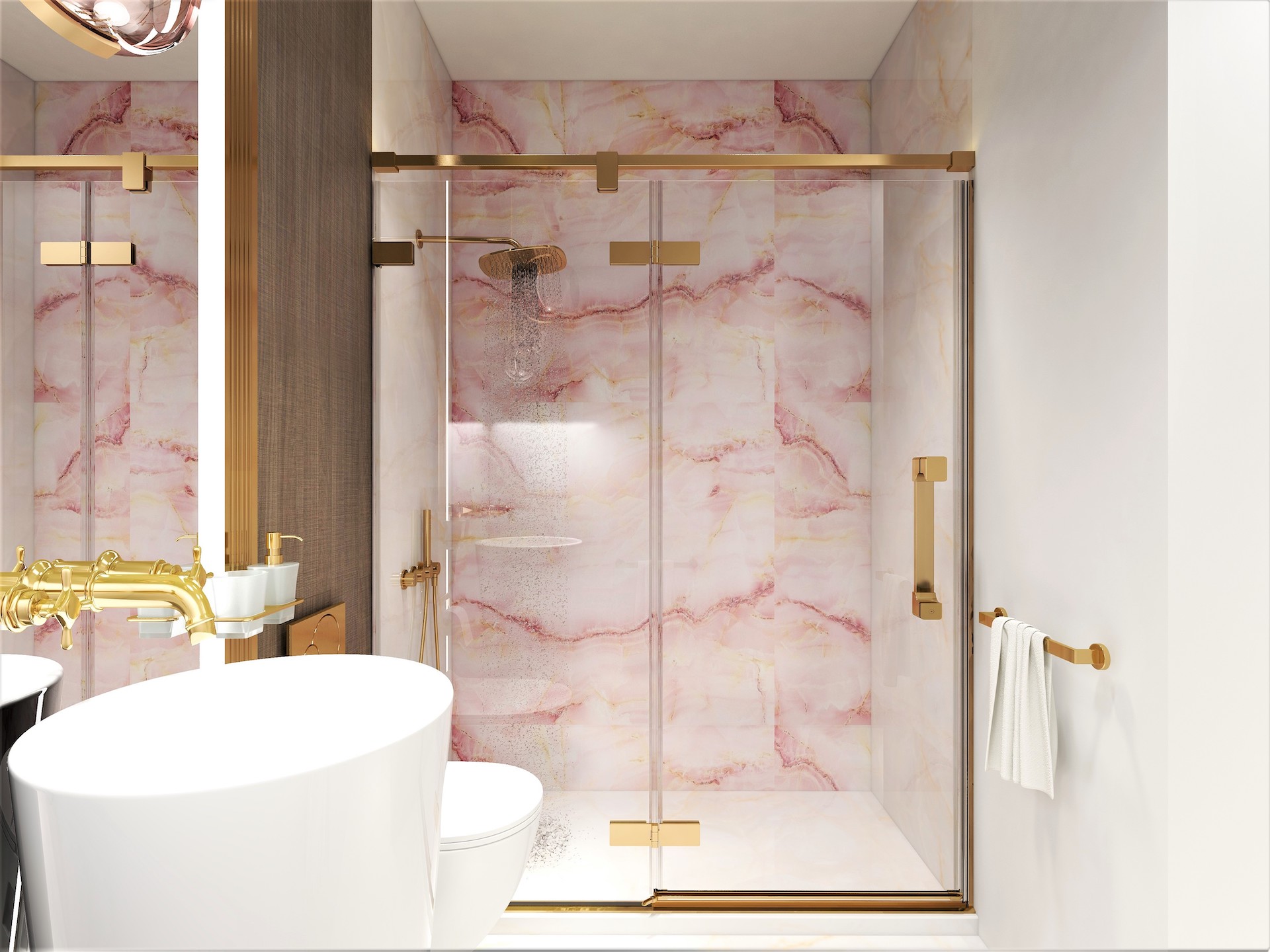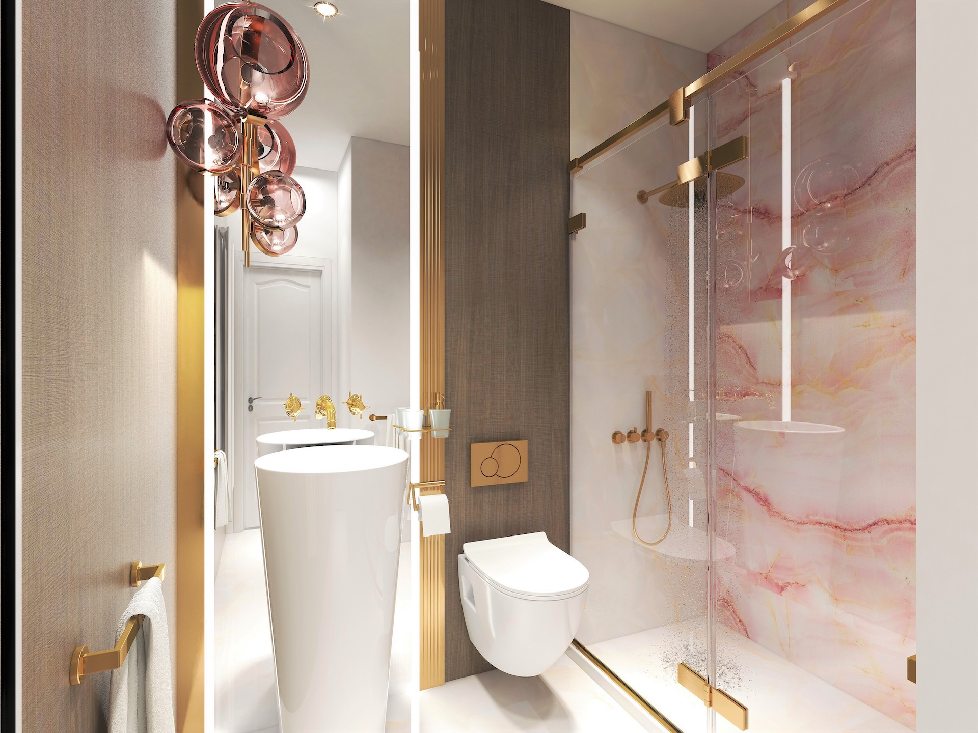 Fiecare baie a duplexului Cattaleya din Săcălaz va fi predată mobilată și utilată la fel ca și în randări.