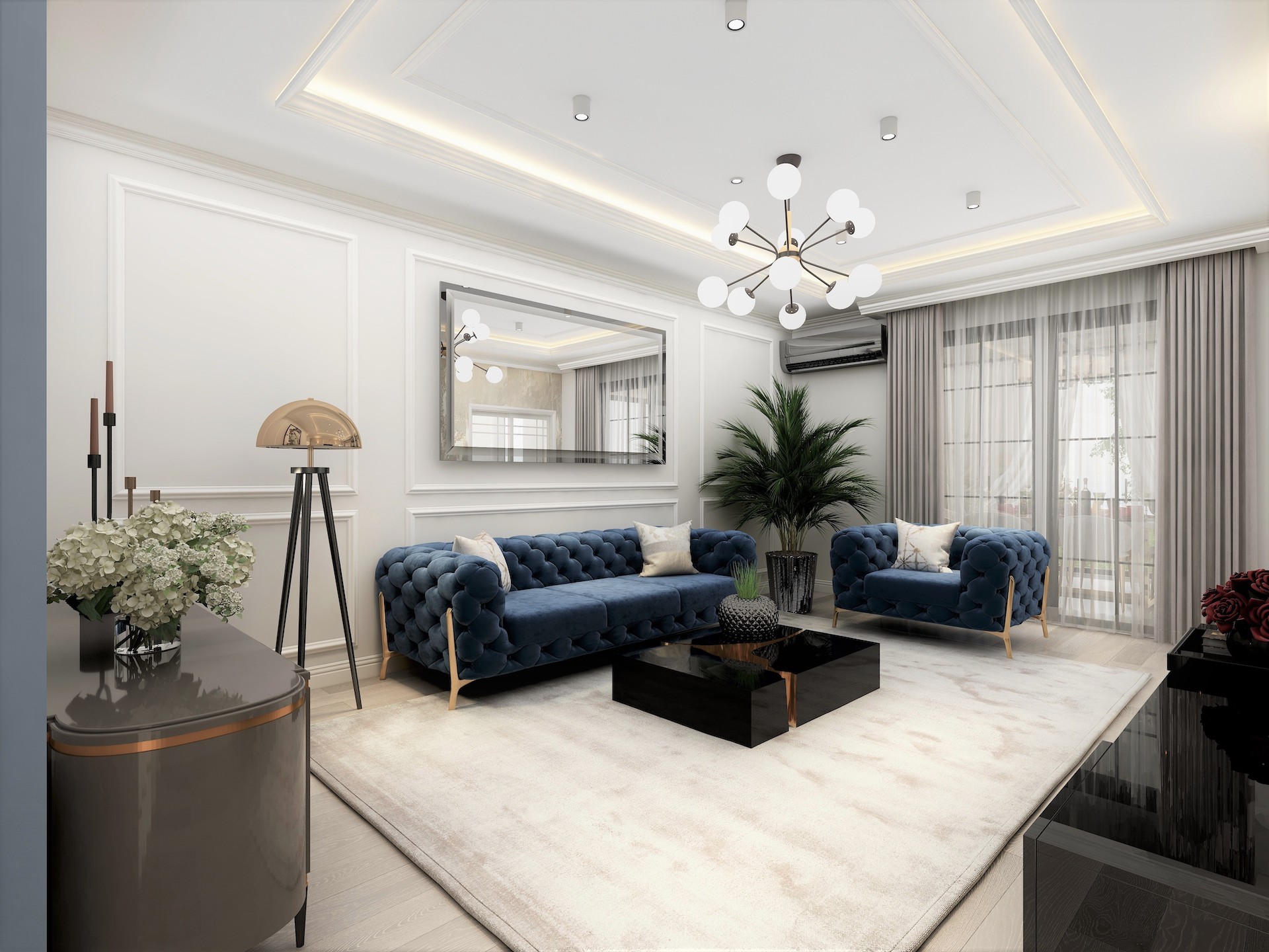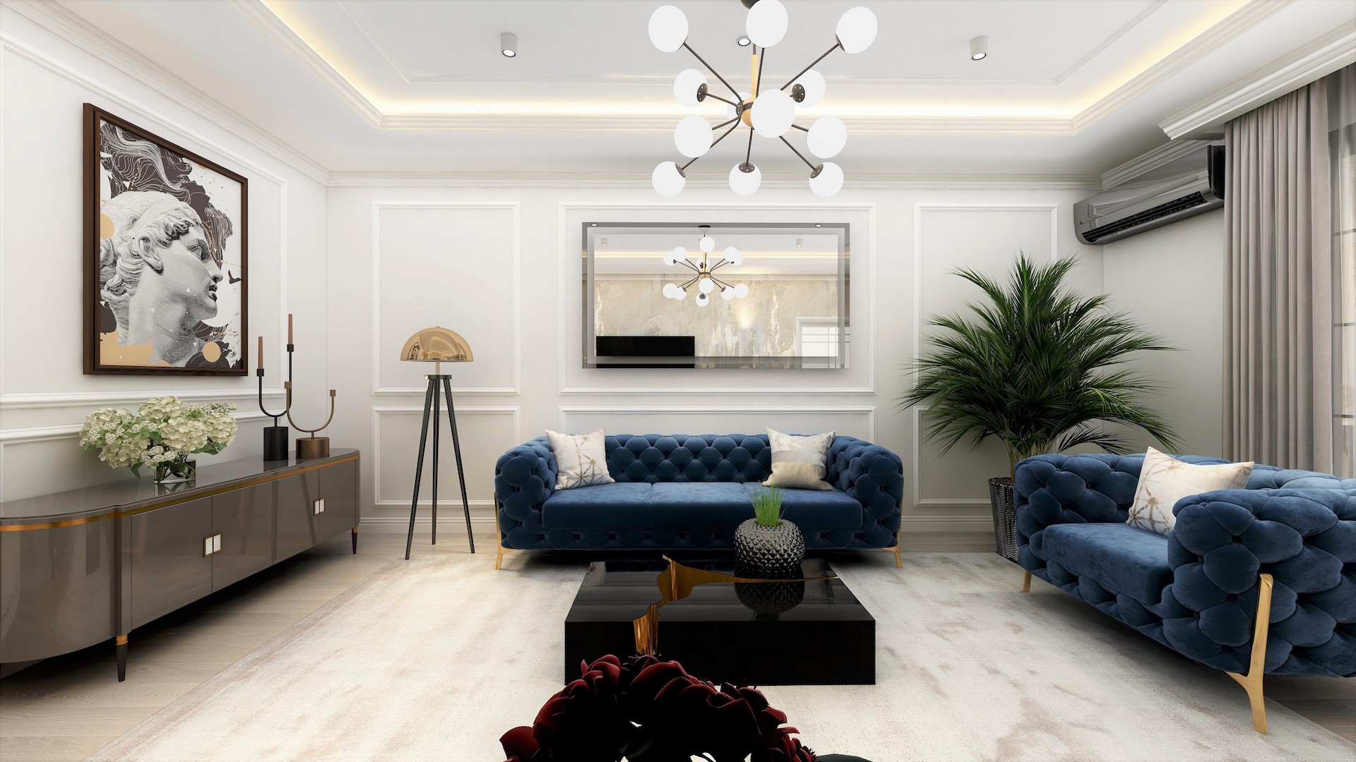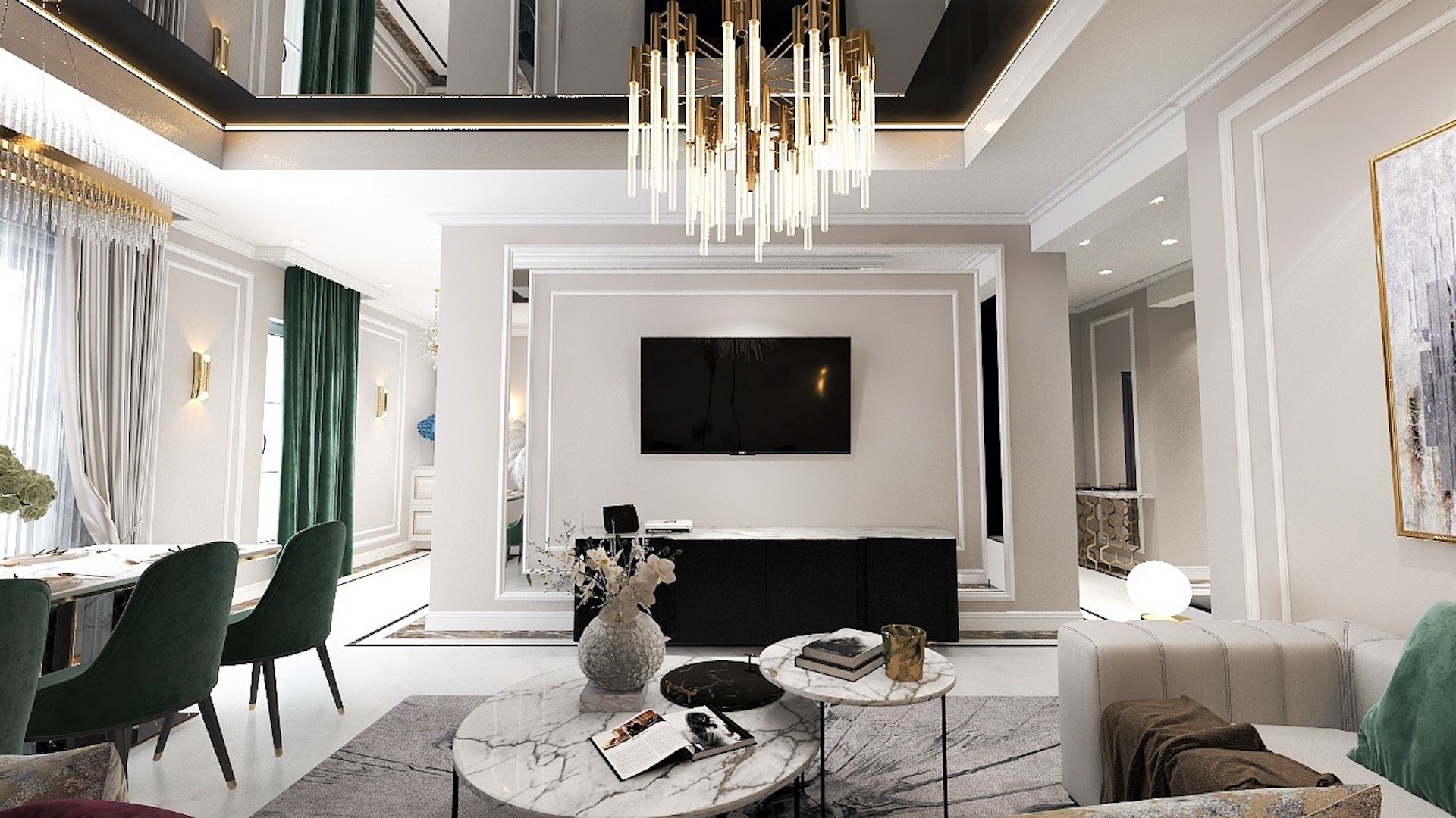 Stilul neoclasic al designului interior reflectă o personalitate puternică îmbrăcată în eleganță a Vilei Cattaleya.